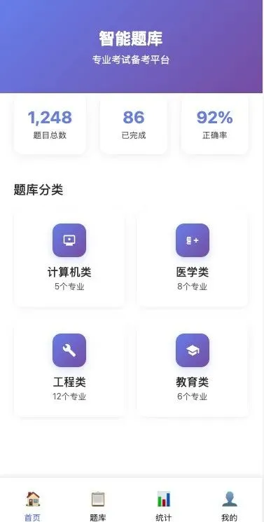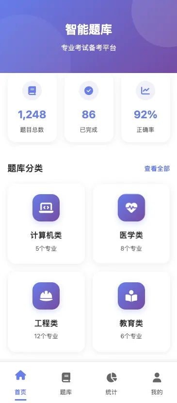简单列几个页面,已经秒杀市场上的题库小程序了,再看看下 deepseek 生成的一版。写了工具录一个视频,但视频质量不太好,不太清楚,优化完再放工具链接吧。