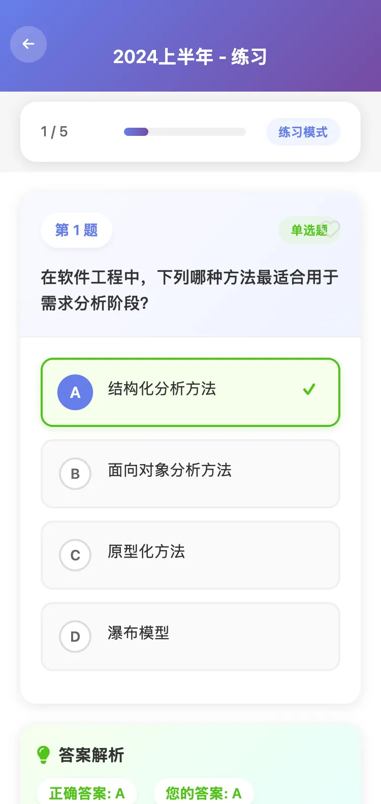 昨天用 AI 设计了下题库小程序,来看看 AI 生成的效果吧。第一版是用