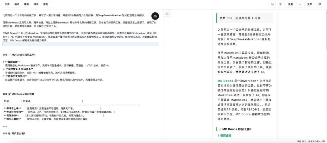 无论你是自媒体创作者、技术写作者,还是公众号运营者,MD Doocs 都能让文档创作回归纯粹与高效。