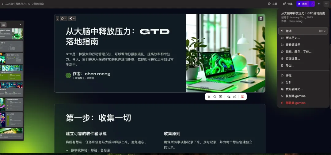 Gamma 是新一代演示文稿创作工具的代表,它让创建专业级演示文稿变得前所未有的简单。如果你想让演示文稿制作更轻松、更专业,不妨试试 Gamma!