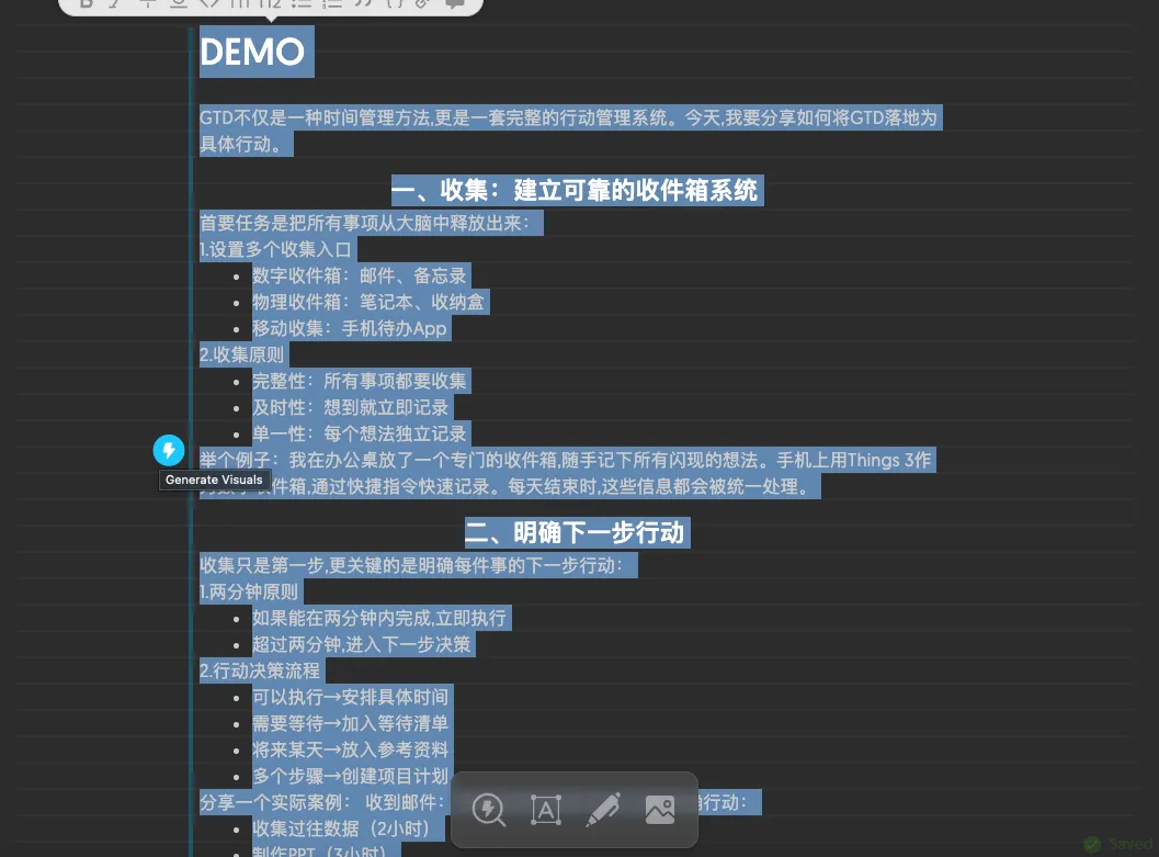 实例演示:1.输入文本,选中要生成的文本,点击生成按钮。