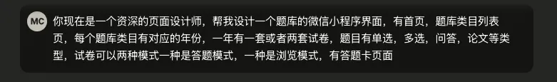 前两天在文章来看看AI 设计的题库小程序界面吧,已经很专业了中分享了 一款 AI 设计的界面,有读者在评论里留言说,想看手把手教的攻略。今天就写一篇