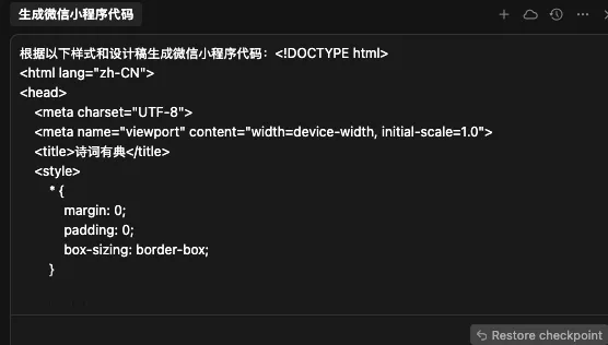 第一步复制 AI 上的 HTML 代码,然后输入提示词,如下:
