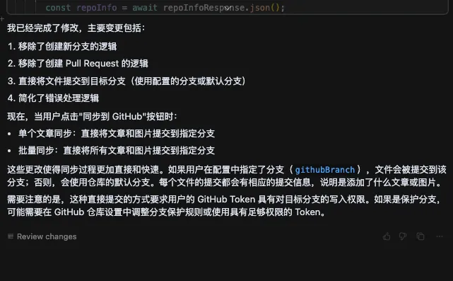 创建 Pull Request 改为了直接提交到目标分支上。这么改是因为 github上免费的用户的 Pull Request 不能设置为自动合并,只能手动的去合并,增加了操作的复杂度,操作太过繁琐,优化后会自动同步到 github 上,并自动发表到个人博客的站点上。